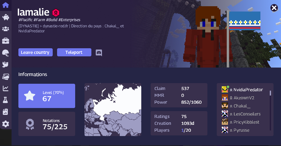 Faction: Ce chat est visible par les membres de ton pays uniquement.